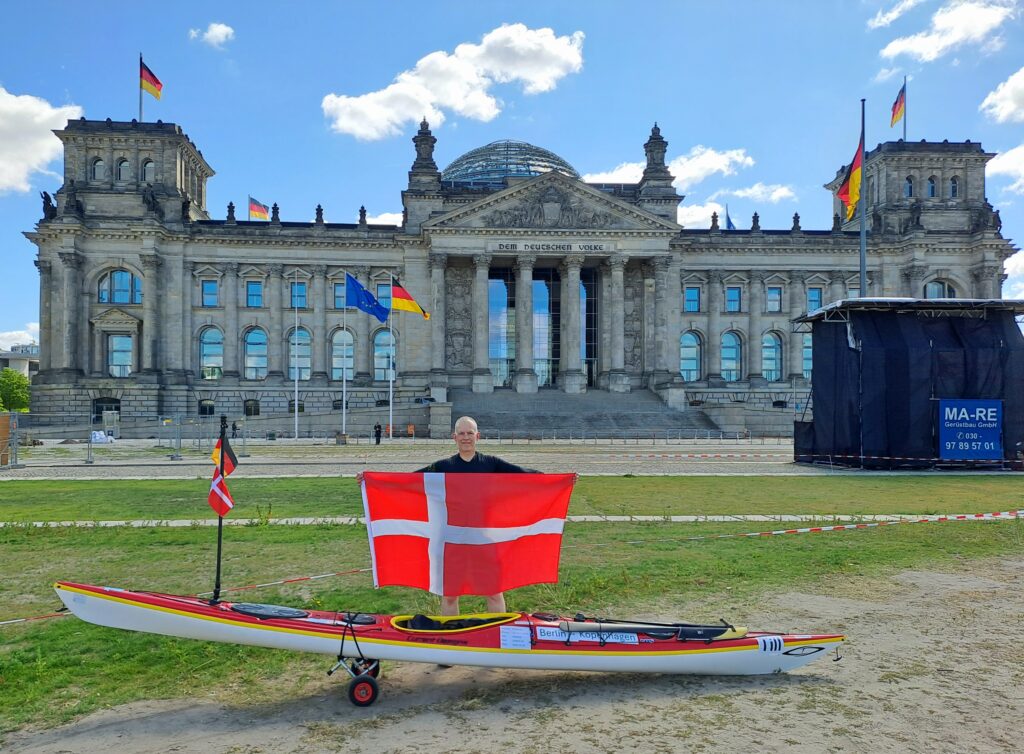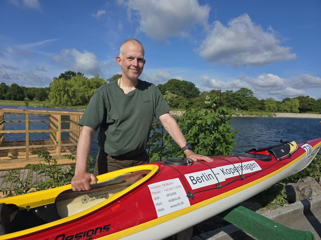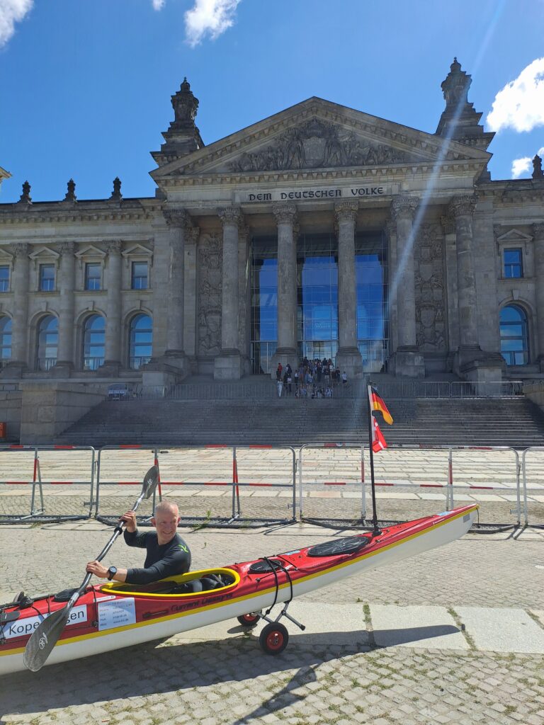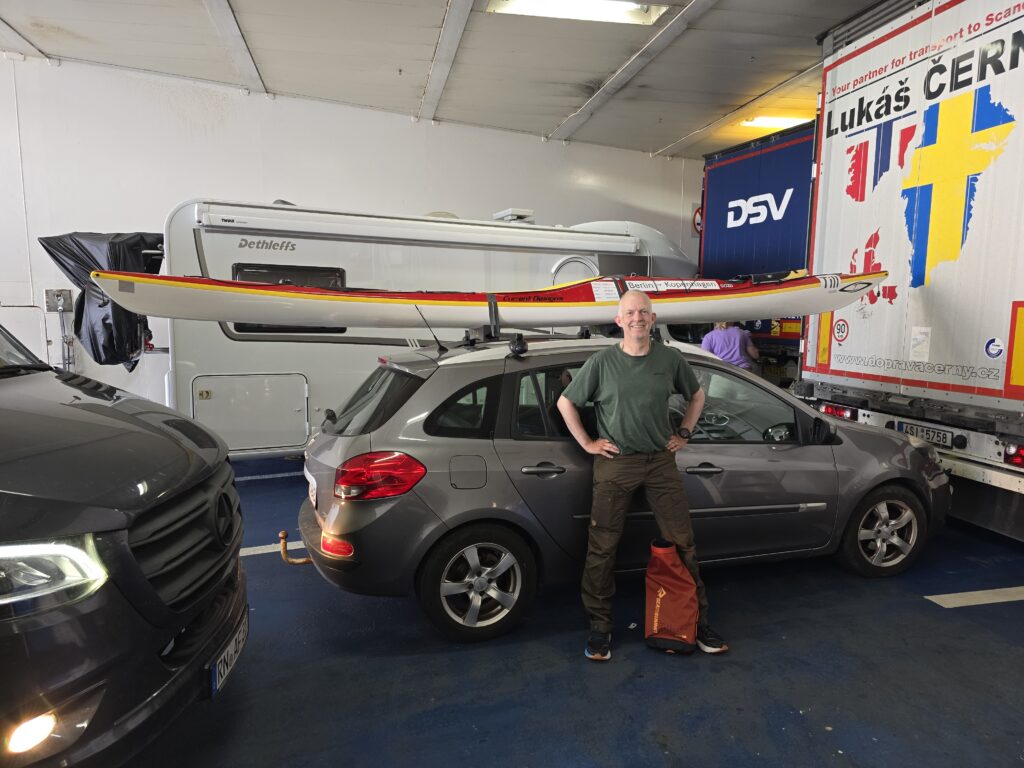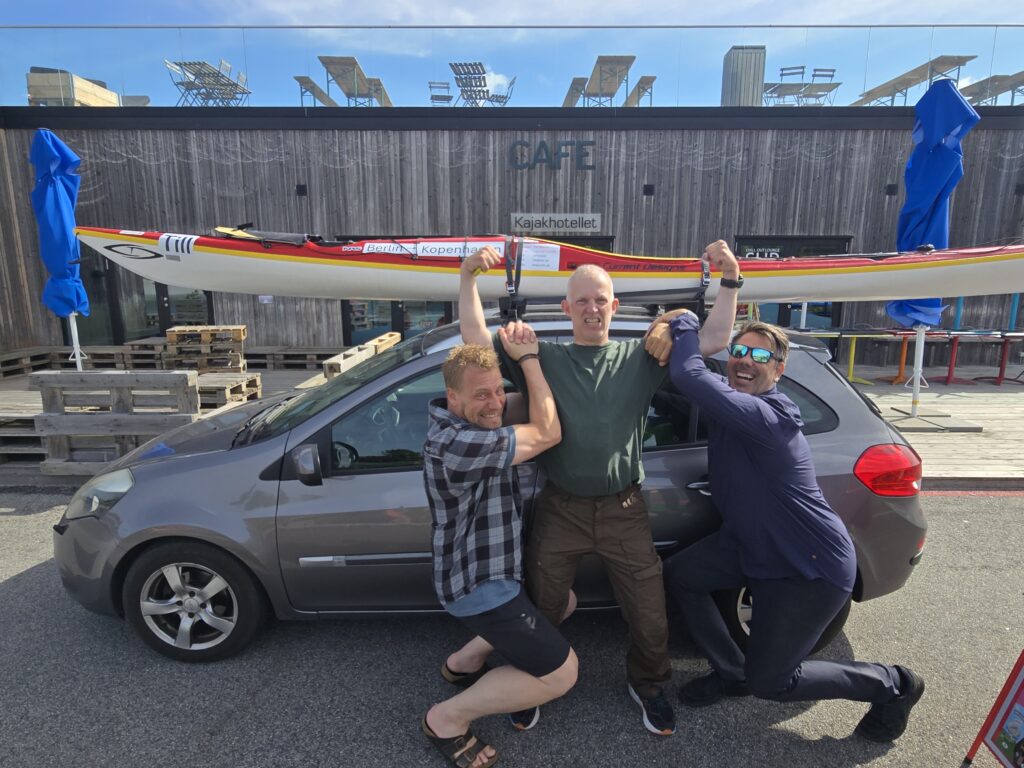 I formiddags var vi ved Kajakprofi.de hvor jeg skulle have et par ro-shorts. De havde et par der passede godt. Så vi var sådan set færdige efter 10 minutter, men vi skulle jo lige se det hele, det kunne jo være der var noget vi manglede! Så fik jeg øje på en kajak der sad sådan almindelige dødelige ikke kunne nå den. Det viste sig at være en Point 65 prototype for Freja Hoffmeister. Hvis i ikke ved hvem det er, så er hun fra Kiel og har roet rundt om Australien, Sydamerika, og er i gang med Nordamerika. Jeg fik da lov til lige at løfte den op, det er selvfølgelig AI som ikke fik placeret mine hænder rigtig!