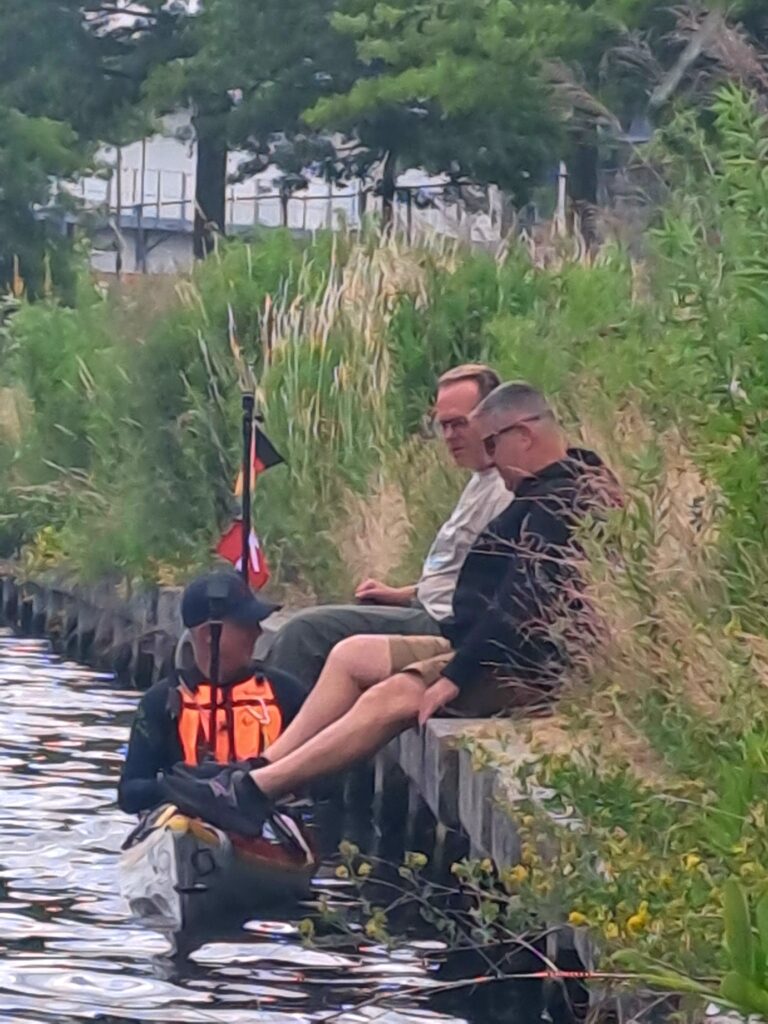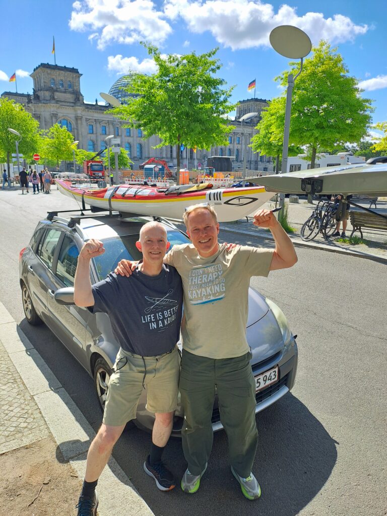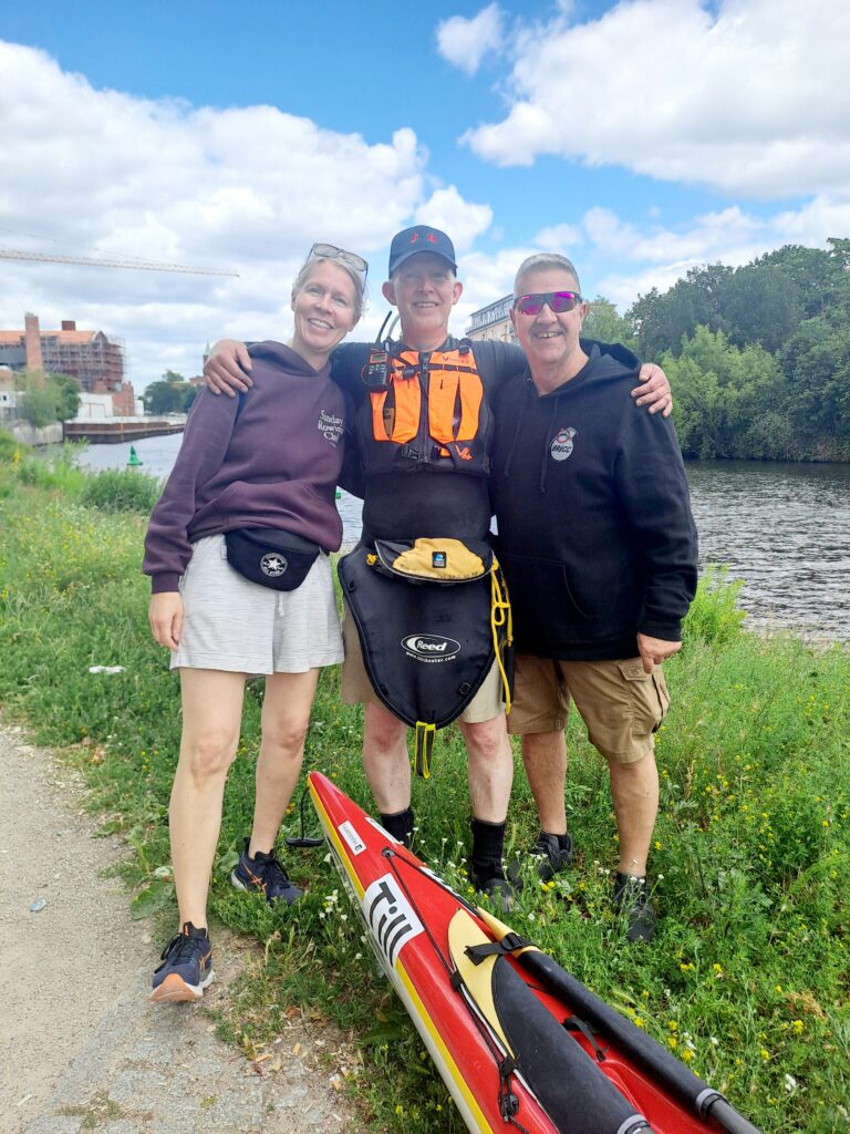 Da jeg ankom til broen var der dog ingen spioner. Men mine forældre var der, og Christian så vi krydsede lige en gang til. Der var dog ikke nogen oplagte steder at gå i land. Christian skulle hurtigt afsted efter lige at have hilst for så at nå færgen i Rostock. Jeg ville ro videre til Freundschaftsinsel i Potsdam midt, og holde lidt pause der, og der havde jeg så bedre mulighed for at hilse på forældrene.
