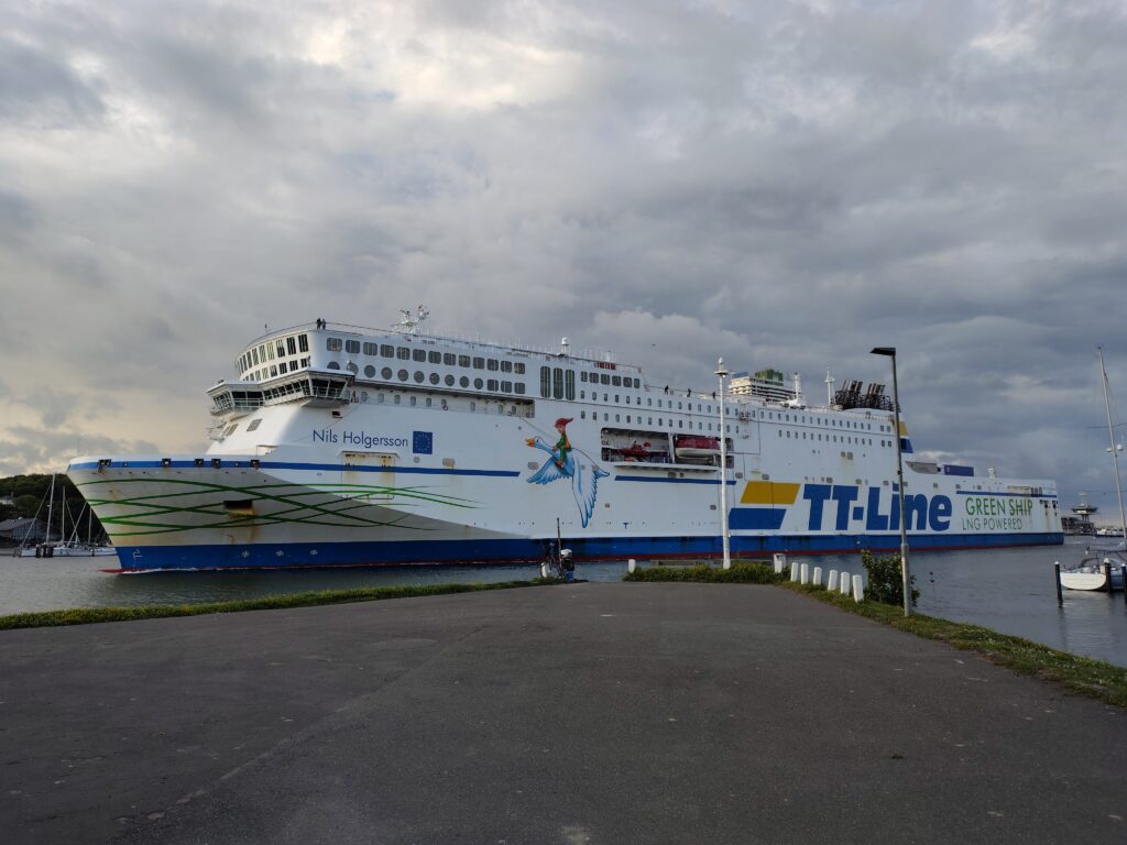 Senere da jeg sad i klubhuset og checkede vejret de kommende dage, så kunne jeg høre en dyb brummen og jeg løb ud, og ja det var “Oma’s Schiff” som helt tilfældigvis kom i havn lige dér. Ok, det er ikke helt den samme båd mere, men symbolsk, der er den gamle Nils Holgerson og den nye.